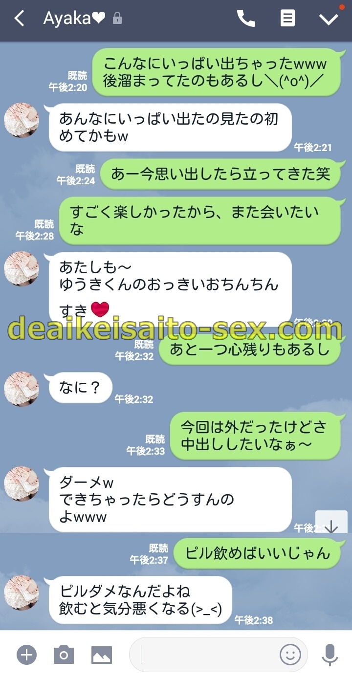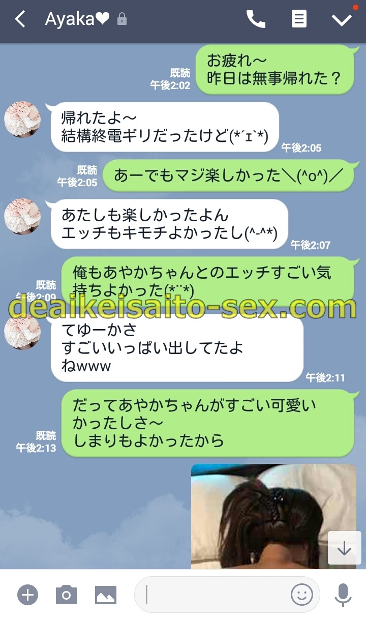 20代のギャルとはめ撮りセックスをしたあとのラインのやりとり